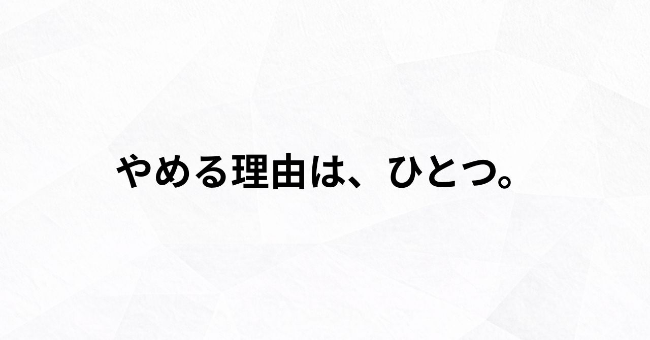 やめる理由は、ひとつ。